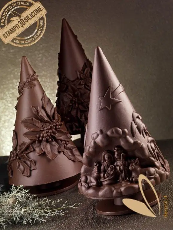 Gli stampi in silicone decosil® sono il frutto di un design ricercato: forme e soggetti dei nostri stampi di silicone sono originali, nascono da un’idea, da uno spunto e vengono creati a partire da un modelli scolpiti in terracruda. Gli stampi 3D professionali consentono di creare oggetti bi e tridimensionali di cioccolato o di zucchero con alta definizione di particolari perfetti per creare ad esempio volti o soggetti con molti sottosquadra. È possibile creare oggetti 3D opachi e lucidi: una delle proprietà del silicone è quella di replicare fedelmente la superficie del modello con cui viene a contatto.