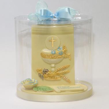 La pergamena della Prima Comunione è un altro metodo per decorare le torte da Comunione semplicemente imprimendo del pastigliaggio e colando del cioccolato bianco si ottengono delle pergamene sottili da colorare a piacere